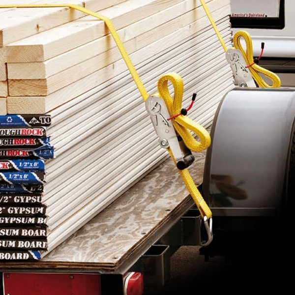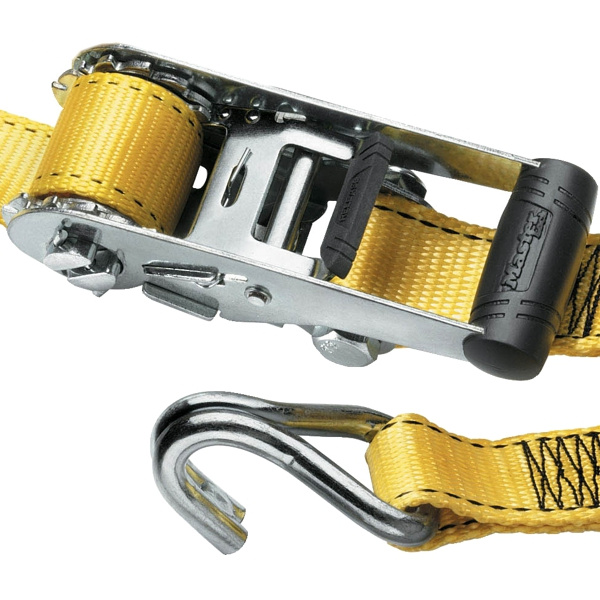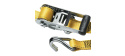 Upínací popruh s ráčnou zakončený háčky. Délka 4 500 mm a šířka 35 mm. Vysokopevnostní háčky. Páka ráčny z odolného PVC plastu. Maximální nosnost 1250 kg. Barva: žlutá Cena za kus