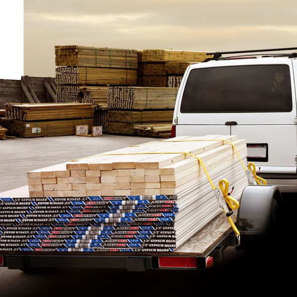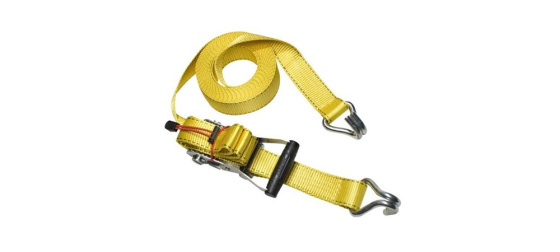 Upínací popruh s ráčnou zakončený háčky. Délka 8 250 mm a šířka 50 mm. Vysokopevnostní háčky. Páka ráčny z odolného PVC plastu. Maximální nosnost 2250 kg. Barva: žlutá Cena za kus