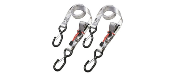 Set 2ks upínacích popruhů zakončených háčky. Délka 180 cm a šířka 25 mm. Vysokopevnostní háčky s pojistnou sponou. Maximální nosnost 250 kg. Barva: šedá Cena za set
