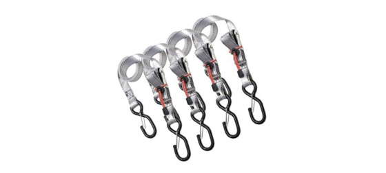 Set 4ks upínacích popruhů zakončených háčky. Délka 1 800 mm a šířka 25 mm. Vysokopevnostní háčky s pojistnou sponou. Maximální nosnost 250 kg. Barva: šedá Cena za set