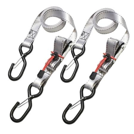 Set 2ks upínacích popruhů zakončených háčky. Délka 5 m a šířka 25 mm. Vysokopevnostní háčky s pojistnou sponou. Maximální nosnost 250 kg. Barva: šedá Cena za set