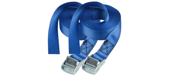 Set 2 ks upínacích popruhů s kovovou přezkou o délce 2,5m a šířce 25mm, nosnost 100 kg. Tento popruh se nejlépe používá jako běžný nákladový pás, kde není třeba háček. Pro snadné a bezpečné použití pracuje přezka s několika zuby.