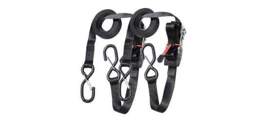 Set 2ks upínacích popruhů s ráčnou zakončených háčky. Délka 4 250 mm a šířka 25 mm. Vysokopevnostní háčky. Páka ráčny z odolného PVC plastu. Maximální nosnost 400 kg. Barva: černá Cena za set