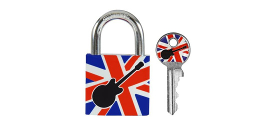 Visací zámek 3430EURDGUITAR pro všeobecnou ochranu z pevného hliníku o šířce 30 mm. Hliníkové tělo zámku s potahem odolné proti poškození a korozi. Třmen z oceli o průměru 5 mm odolný proti přeřezání. Nabízíme ve 4 možných variantách s různými potisky.