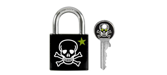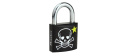 Visací zámek 3430EURDSKULL pro všeobecnou ochranu z pevného hliníku o šířce 30 mm. Hliníkové tělo zámku s potahem odolné proti poškození a korozi. Třmen z oceli o průměru 5 mm odolný proti přeřezání. Nabízíme ve 4 možných variantách s různými potisky.