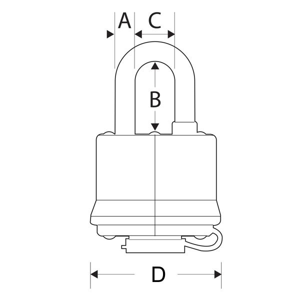 a poškození. Třmen z kalené oceli o průměru 10 mm odolný proti přeřezání. Vložka se 4 stavítky. Dvojitá západka odolná proti vypáčení. Krytka klíčové dírky.