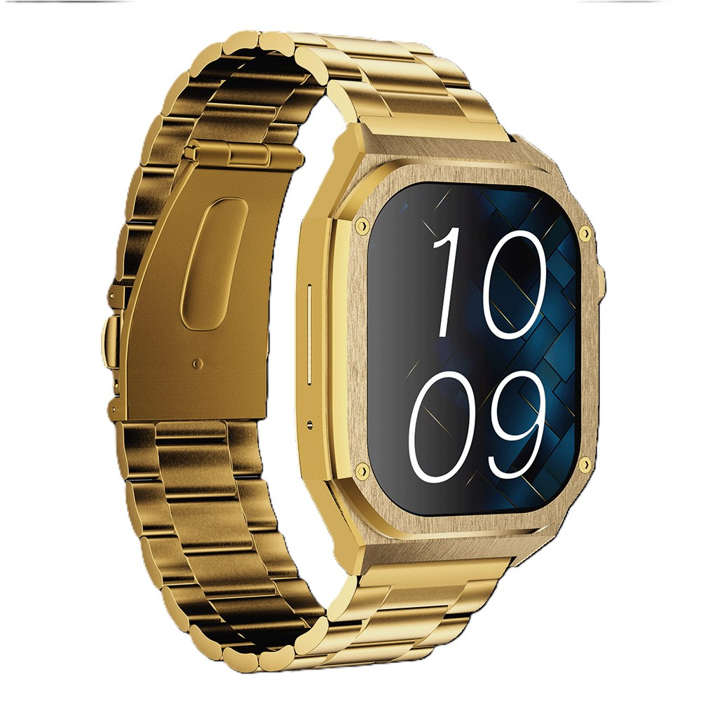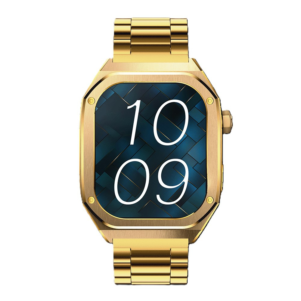Chytré funkce:Vlastní ciferník, Ovládání přehrávače hudby v mobilu; Materiál pouzdra:Nerezová ocel; Notifikace a zprávy:Notifikace z telefonu; Tvar ciferníku:Hranatý; Typ displeje:AMOLED; Určení:Pánské; Vyměnitelný řemínek; Barva pouzdra:Zlatá; Barva řemínku:Zlatá; Propojení s mob. telefonem; Sportovní funkce:Měření tepu; Vodotěsnost a odolnost:IP68.Více