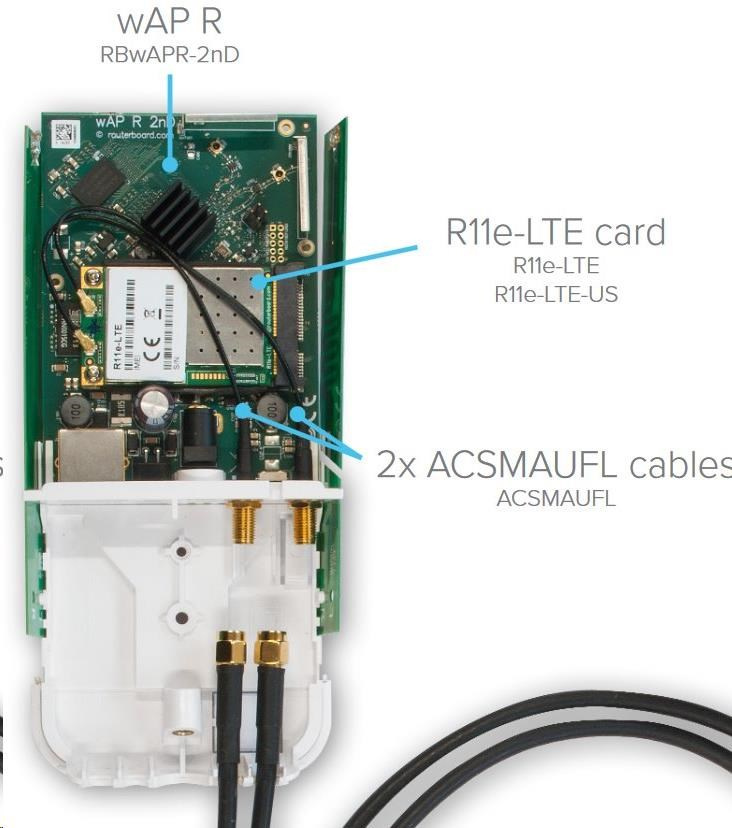 ACSMAUFL je minipigtail s konektory u.Fl a SMA female. Tento pigtail se zapojuje mezi LTE kartu (např. ve wAP R kitu) a RF venkovní kabel. Celková délka minipigtailu je 15cm.. MikroTik, MikroTikls SIA Latgales iela 22 Rīga, LV-1050 Lotyšsko, info@mikrotik.com