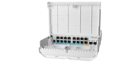 MikroTik Cloud Router Switch CRS318-1Fi-15Fr-2S-OUT, 800MHz CPU, 256MB, 16x10/100 (PoE-in,1x out),2xSFP, vč.L5, venkovní