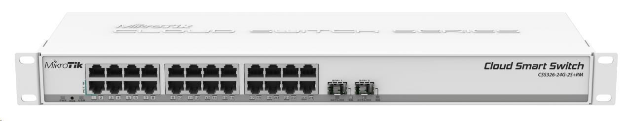 24 portový non-blocking gigabitový switch s web managementem. K dispozici jsou dále 2xSFP+ sloty. Je použit switch chip Marvell DX, operační systém SwOS zajišťuje základní funkcionality tak i pokročilé funkce: port-to-port forwarding, MAC filter, VLANy, mirror trafic, bandwith limitation,MAC and IP header fields.