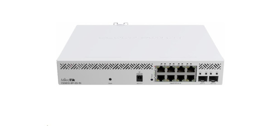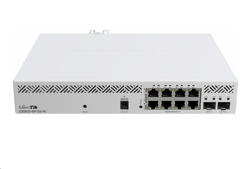 MikroTik Cloud Smart Switch CSS610-8P-2S+IN je ovladatelný, 8portový gigabitový PoE přepínač se dvěma SFP+ sloty (zpětně kompatibilní i s SFP moduly), bez ventilátoru a sady pro připojení k 19" racku. Spínač má aRozpočet 140W PoEpro napájení až 8 zařízení pomocí standardů 802.3af/at s amaximální zatížení 30 W/port.