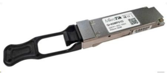 MikroTik Q+85MP01D je QSFP+ optický multi-mode modul s rychlostí 40 Gbps, vlnovou délkou 850 nm, maximálním dosahem 150m (OM4) a optickým konektorem MPO.
