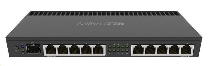 RB4011 je vybaven 10x GLAN, jedním SFP+ portem a napájecím konektorem ze zadní strany routeru. První Gigabitový port podporuje napájení přes pasivní PoE, poslední port PoE-Out slouží pro napájení dalšího zařízení se stejným napětím jako na vstupu RB4011.
