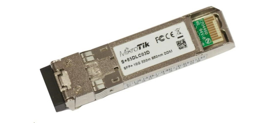 S+85DLC03D je 10Gbps SFP+ modul s LC konektorem, pracuje s vlnovými délky 850nm, je určen pro více vidové vlákno (MM), použití do 300m. Moduly jsou otestovány a výrobce garantuje plnou kompatibilitu s produkty CCR1036-8G-2S+ a CCR1036-8G-2S+EM. Moduly jsou taktéž kompatibilní s produkty jiných výrobců.