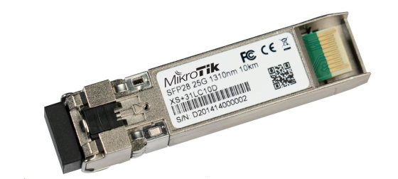 S+31LC10D je singlemode SFP/SFP+/SFP28 modul s maximální propustností 25 Gbps, podporující i nižší rychlosti 1 Gbps i 10 Gbps s vlnovou délkou 1310nm a dvěma LC konektory pro spojení až na vzdálenost 10km. Modul je kompatibilní se všemi aktivními prvky od MikroTiku a také se zařízeními jiných výrobců "cisco compatibile". Perfektní volba například pro MikroTik zařízení CCR2004-1G-12S+2XS.