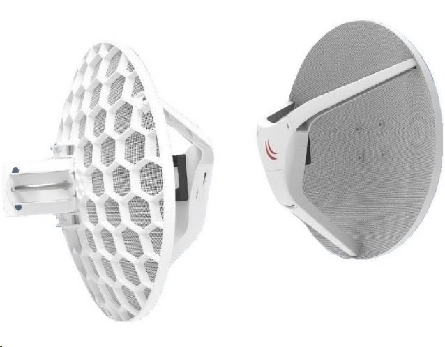 Wireless Wire Dish je naprosto revoluční novinka v MikroTik sortimentu, která osloví každého, kdo vytváří spoje na středně dlouhé vzdálenosti. Wireless Wire Dish je ptp řešení v pásmu 60GHz pracující se standardem 802.11ad, který v reálném provozu umožňuje propustnost až 1000Mbps Full Duplex na vzdálenost až 1500m. RouterBoard je jako vždy vybaven velmi oblíbeným operačním systémem RouterOS s L3 licencí. Pro upgrade jednotky na AP je potřeba dokoupit pouze L4 licenci.