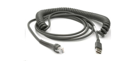 Kroucený kabel Motorola pro snímače čarového kódu LS2208/LS4208. Délka po natažení - 2,8m.