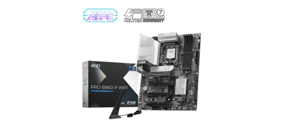 PRO B860-P WIFI offers a simple design with a harmonious silver color scheme that perfectly matches both white and black PC builds. It is engineered with many exclusive features of MSI, a true Wi-Fi 7 with EZ Antenna, 5G LAN, Thunderbolt 4, PCIe 5.0 M.2, and Supplemental PCIe Power, ready for the Intel® Core™ Ultra processors.