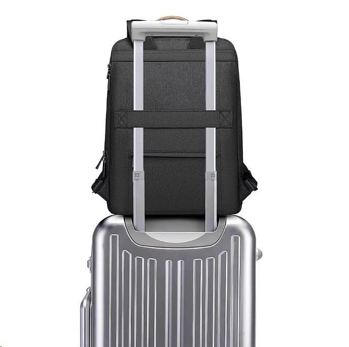 Tento businessový a městský batoh na notebook je vyroben z kvalitního polyesteru odolného vůči opotřebení a vodě. Mysleli jsme také na pohodlí, které zaručuje kvalitní a prodyšné polstrování popruhů i zádové části. Jedná se o stylového a praktického společníka, který vám usnadní organizaci vašich věcí. Najdete tu přihrádku na notebook do 15,6" a tablet do 9" umístěné v hlavní kapse. Takto budete mít svá elektronická zařízení bezpečně uložená a snadno dostupná. Skvělou organizaci věcí umožňují vnitřní kapsy a skrytá kapsa na cennosti ze zadní strany batohu. V případě cestování můžete využít držák na kufr, kterým batoh připevníte na rukojeť svého kufru.