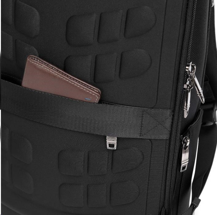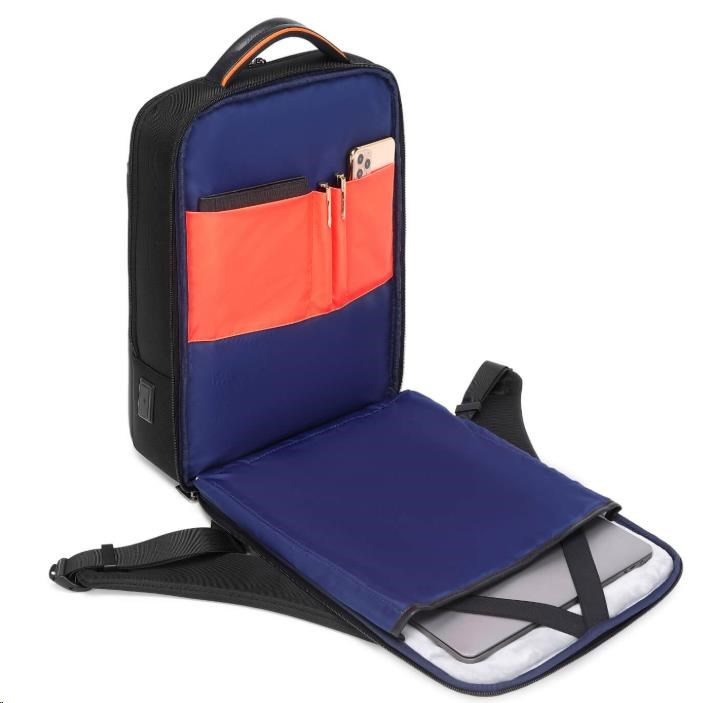 Hlavní kapsa s možností otevření až o 180° zajišťuje maximální přehlednost a snadný přístup k uloženým věcem. Vnitřní kapsy jsou barevně odlišené pro rychlou orientaci. Pro bezpečné uložení cenností slouží skryté kapsy v zádové části i v ramenním popruhu. Pohodlí při nošení zajišťuje polstrovaná a prodyšná zádová část spolu s ergonomickými ramenními popruhy.
