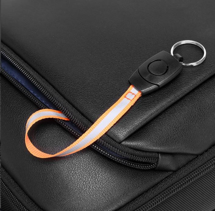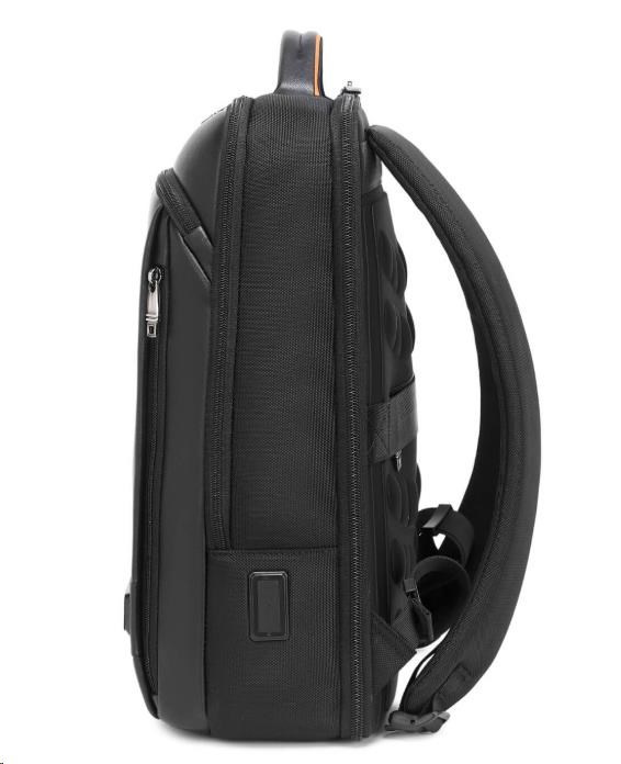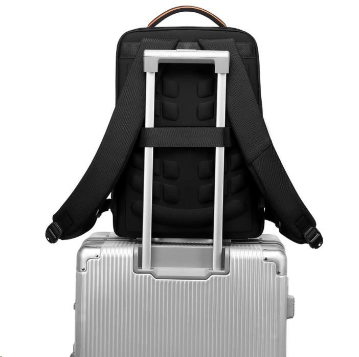 Batoh je vybaven integrovaným USB a USB-C portem pro pohodlné nabíjení elektroniky na cestách (powerbanka není součástí). Praktický je také popruh pro uchycení na kufr a držák na klíče v přední kapse.