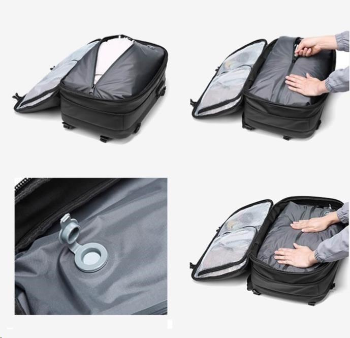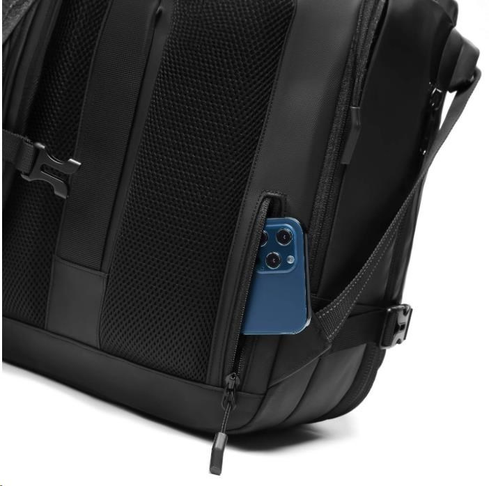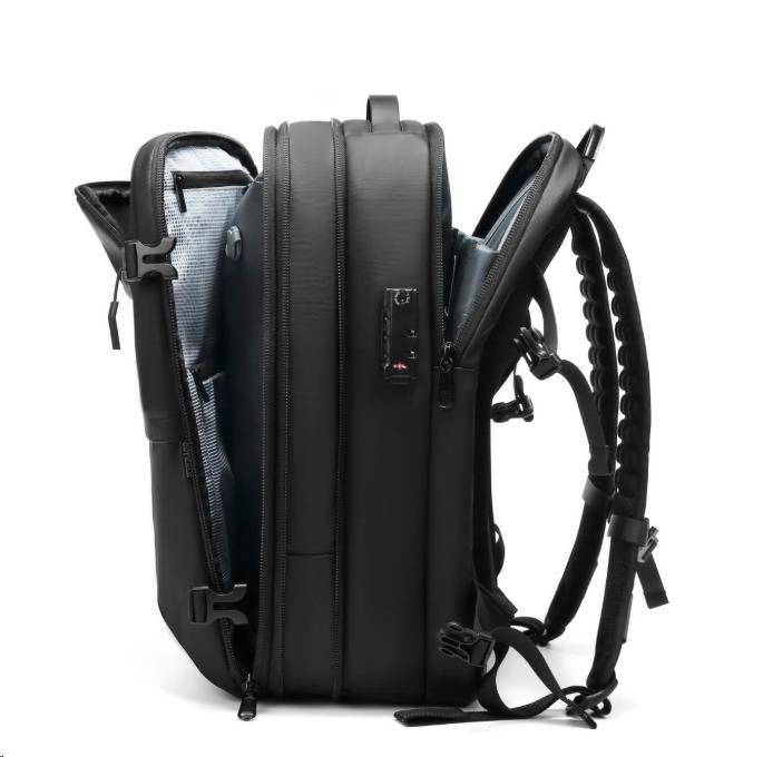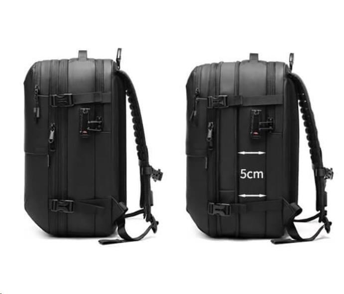 Batoh nabízí rozšiřitelný objem z 22 l až na 48 l, kvalitní zpracování z voděodolného materiálu 900D Oxford + PU a bezpečnostní prvky, včetně zámku a skrytých kapes. Uvnitř najdete speciální kapsy na notebook do 17,3", tablet do 9", láhev, přední a vnitřní úložné kapsy a také izolační suchou kapsu na obuv nebo špinavé prádlo.