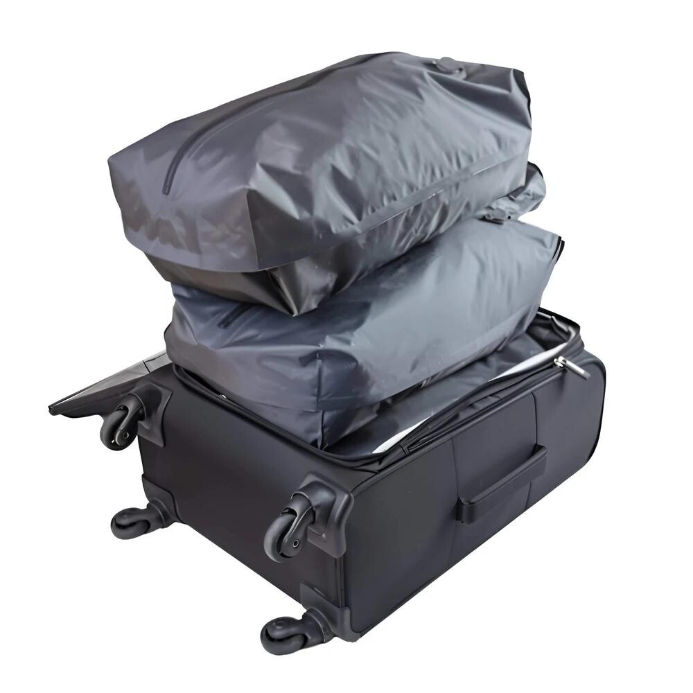 Cestujete nalehko, ale kufr je vždy plný? MYBALO Vacuo bag je praktický kompresní vak, který vám pomůže efektivně využít prostor v zavazadle. Stačí vložit oblečení, uzavřít zip a odsát přebytečný vzduch – výsledkem je výrazně menší objem sbalených věcí.