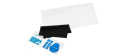 - Součástí balení je čisticí hadřík, dva dezinfekční vlhčené ubrousky, dvě lepítka pro odstranění prachu a nálepky usnadňující aplikaci skla.
