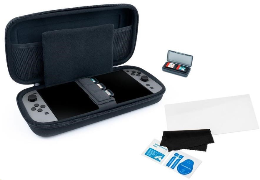 Tato sada příslušenství od společnosti Nacon určená pro herní konzoli Nintendo Switch 2 obsahuje pevné přepravní pouzdro, tvrzené ochranné sklo a praktické pouzdro pro uložení dalších herních karet.