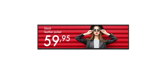 Tento prodloužený 42palcový displej, který poskytuje prostorově efektivní vizualizaci ve stísněných prostorech, jako jsou chodby a regály v prodejnách, nabízí výrazný ultra širokoúhlý poměr stran 16:4. Zatímco vysoká přizpůsobivost zahrnuje orientaci na šířku i na výšku, což je ideální pro oblast s omezeným prostorem, tvorba obsahu zůstává nadále jednoduchá a nenáročná. Obsah je ostrý a jasný s přesvědčivou čitelností i v pronikavě osvětleném prostředí s vysokou úrovní jasu 700 cd/m2 v kombinaci s povrchem tlumícím světelné odrazy. Moderní tenký design vytváří elegantní digitální povrch, který se dokonale hodí do okolní architektury a bezproblémově zapadá do každého prostředí.
