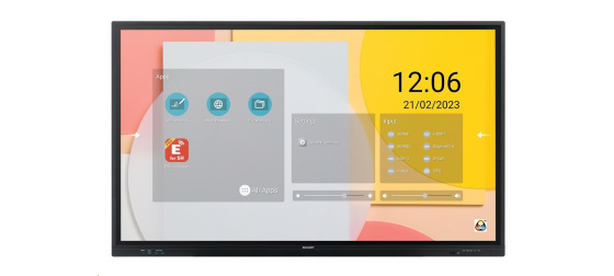 | Vestavěné aplikace | Správce souborů; Výběr vstupu; Nastavení; Webový prohlížeč; Tabule; Bezdrátové sdílení obrazovky - E-Share |