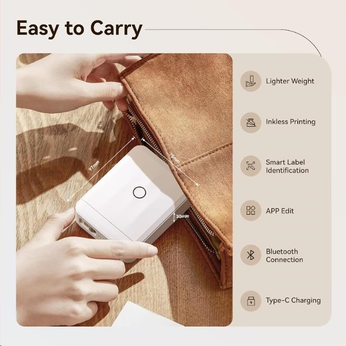 Zapomeňte na zdlouhavé a komplikované procesy tisku etiket. S inovovanou tiskárnou štítků NIIMBOT D110-M je tisk etiket hračkou. Díky Bluetooth připojení a lithiovému akumulátoru můžete polepovat bez omezení až 4 hodiny. S NIIMBOT D110-M můžete jednoduše označovat věci v kanceláři, škole, obchodě a na mnoho dalších místech. Její kompatibilita se systémy Android a iOS znamená, že můžete tisknout přímo ze svého smartphonu nebo tabletu, což zajišťuje maximální pohodlí a efektivitu.
