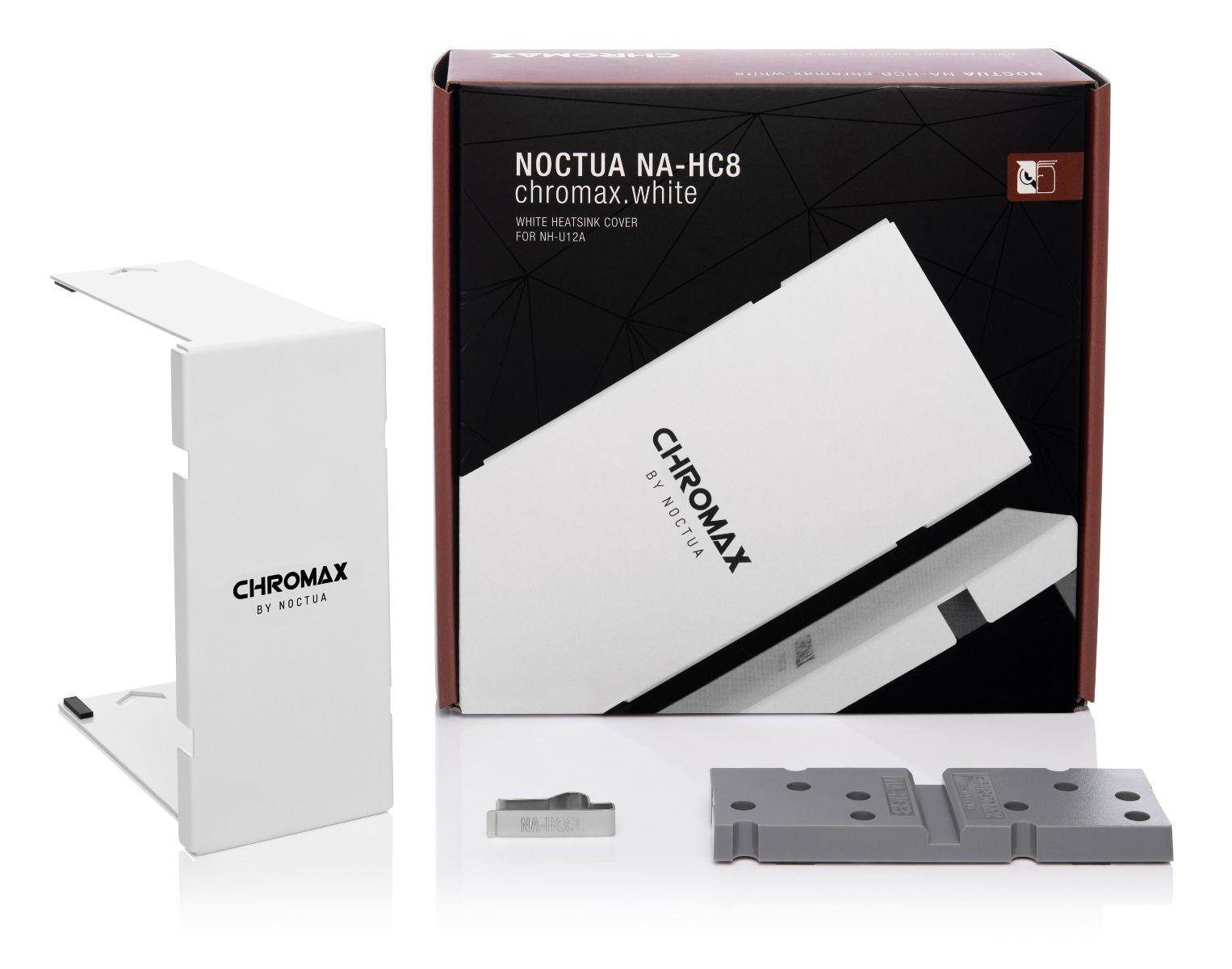 Chladičový kryt NA-HC8 chromax.white je přídavné příslušenství pro oceňované CPU chladiče NH-U12A od Noctua. Vyrobeno z vysoce kvalitního hliníku s bílou práškovou povrchovou úpravou, umožňuje uživatelům dát chladiči elegantní sněhobílý vzhled, který se skvěle hodí do celobílých nebo černobílých sestav. Díky snadné a přímočaré instalaci trvá změna vzhledu chladiče NH-U12A jen pár minut a nevyžaduje ani jeho odpojení od CPU. V kombinaci s ventilátory chromax.black.swap edice NF-A12x25 vám NA-HC8 chromax.black dává možnost proměnit váš NH-U12A v černobílý výkonný stroj, který vypadá stejně skvěle, jako chladí.