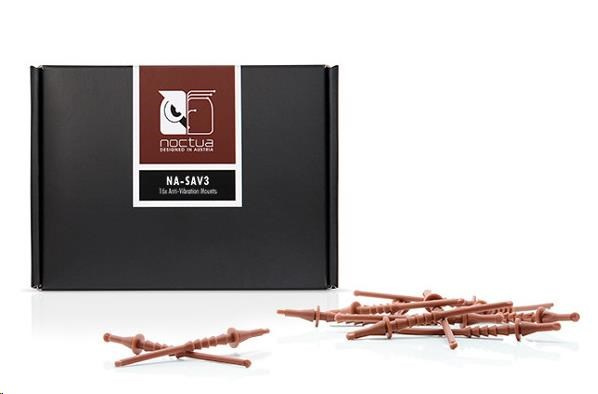 Tyto šrouby nahrazují standardní šrouby pro uchycení ventilátorů a mají anitvibrační efekt. Specifický design umožňuje pohodlnější instalaci v prostorově omezeném prostředí počítače a díky použití vysoce kvalitní gumy jsou tyto úchyty výjimečně jemné a zároveň odolné proti vytržení. Výměnou standardních šroubů za NA-SAV3 úchyty můžete výrazně snížit hluk způsobený vibracemi.