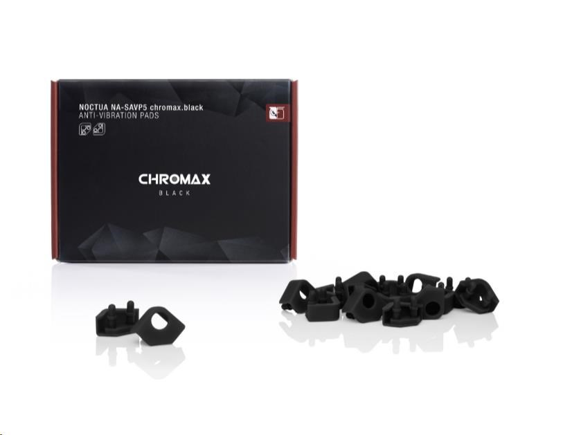Balíček NA-SAVP5 chromax se skládá z 16 NA-AVP5 proti-vibračních podložek pro až 2 kompatibilní 92/80mm větráčky (info o kompatiblitě na stránkách výrobce).