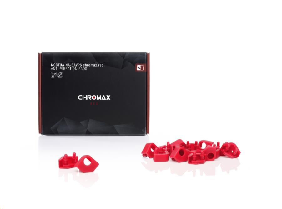 Balíček NA-SAVP5 chromax se skládá z 16 NA-AVP5 proti-vibračních podložek pro až 2 kompatibilní 92/80mm větráčky (info o kompatiblitě na stránkách výrobce).