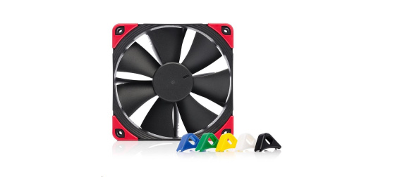 ventilátor, tichý, rozměry 120x120x25mm, hlučnost 18.6 až 22.4dB, průtok 74.3 až 93.4 m3/h, 300 až 1500 otáček, optimalizovaná geometrie a povrch 7 lopatek, SSO2, edice Chromax - vyměnitelné barevné antivibrační podložky