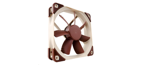 ventilátor, ultratichý, rozměry 120x120x25mm, hlučnost 7.4dB, průtok 107.5 m3/h, 1200 otáček, optimalizovaná geometrie a povrch lopatek, samostabilizující olejové ložisko
