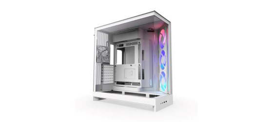 The H9 Flow is a spacious mid-tower ATX case built for high-performance builds, balancing airflow and aesthetics. Its dual-chamber design improves cooling and cable management, while perforated panels, angled fans, and ample fan and radiator support deliver optimal thermal performance.