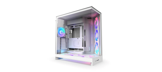 The H9 Flow is a spacious mid-tower ATX case built for high-performance builds, balancing airflow and aesthetics. Its dual-chamber design improves cooling and cable management, while perforated panels, angled fans, and ample fan and radiator support deliver optimal thermal performance.