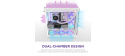 - Dvoukomorový design: Oddělení hlavních komponent od zdroje napájení a disků pro lepší tepelný výkon a správu kabelů.