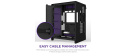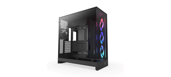 H9 Flow RGB je prostorná skříň formátu mid-tower ATX navržená pro výkonné sestavy, která vyvažuje proudění vzduchu a estetiku. Její dvoukomorový design zlepšuje chlazení a správu kabeláže, zatímco perforované panely, šikmo umístěné ventilátory a dostatek prostoru pro ventilátory i radiátory zajišťují optimální tepelný výkon.