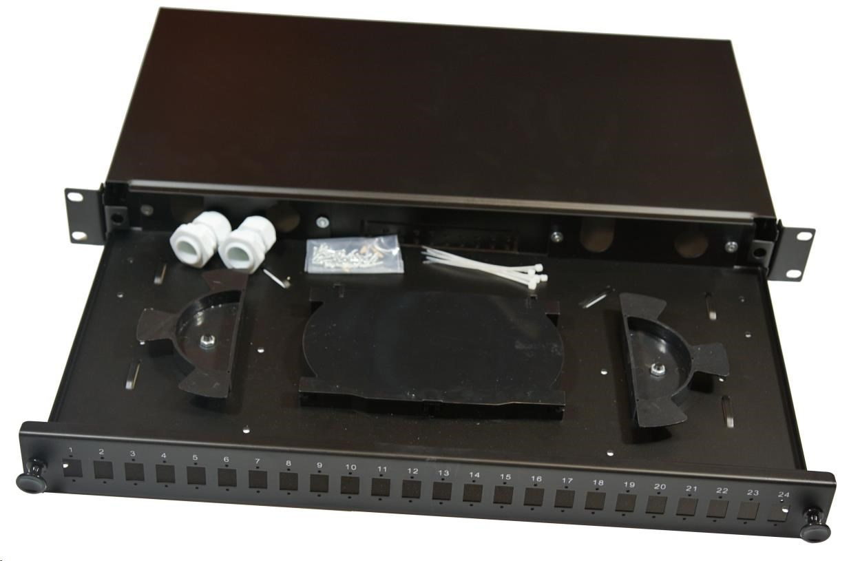 - pevné čelo 24 číslovaných pozic pro 24x SC (24x LC Duplex, 24x E2000)