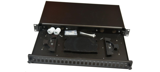 Optická vana výsuvná 1U, 24x SC simplex (24x LC duplex, 24x E2000) s kazetou OPTRONIC pro 24 svárů
