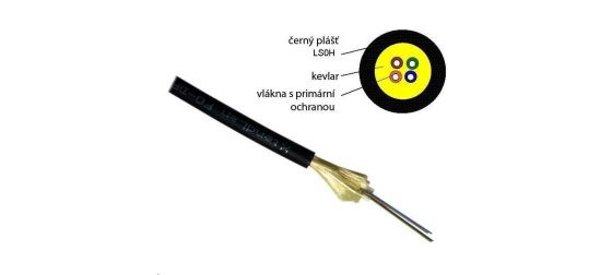 Kabel možno instalovat s velmi malým poloměrem ohybu. Nízká hmotnost (11 g/m) při solidní pevnosti v tahu 1000 N. Cívka 1 km (14,8 kg). Barva černá. Optický kabel pro koncová vedení s optickým vláknem G.657, kterému nevadí velmi malý poloměr ohybu. Kabel je určen pro zakončení vedení, nechráněnou venkovní instalaci, typicky je používán i převěsy až na 150 m.
