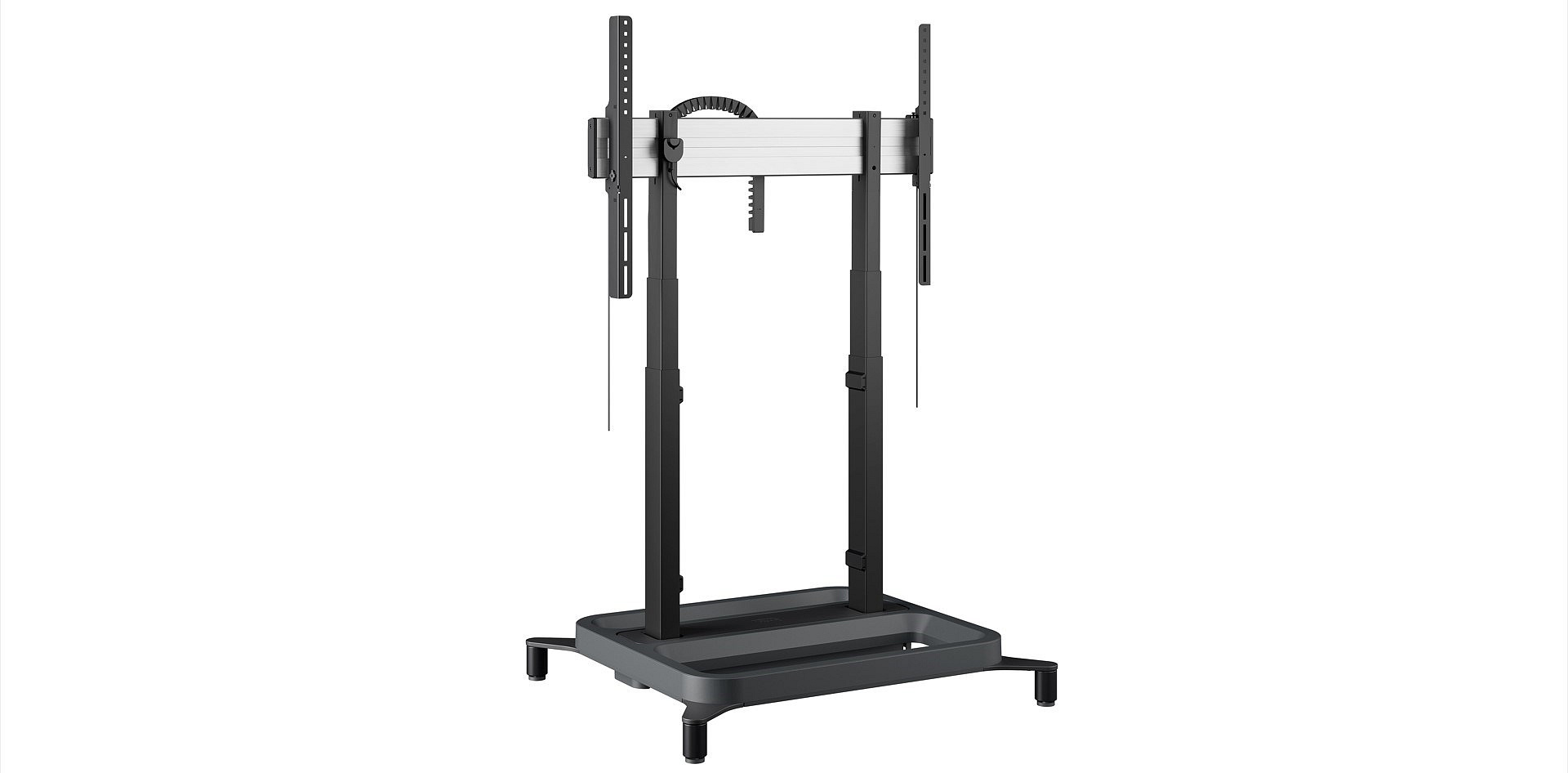 Podlahový stojan RISE 5108 s motorovým výtahem je vhodný pro displeje s úhlopříčkou až 86" a maximální hmotností 120 kg. Zvedák zvedá displej plynule, rychle a bezpečně rychlostí 80 mm/s díky technologii QuickRise™. Díky rozsahu zdvihu 980 mm je zvedák vhodný pro velmi nízké i vysoké polohy.