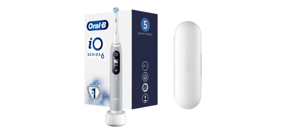 Dosud nejdůkladnější a nejpříjemnější čištění zubů pod značkou Oral-B! Vyzkoušejte pokrokovou technologii a špičkové provedení zubního kartáčku Oral-B iO6 a už nikdy nebudete chtít nic jiného! Inovativní systém magnetického pohonu iO přenáší čisticí energii jemných mikrovibrací na konce vláken, která tak snadno klouzají po zubech a činí čištění účinné a příjemné. Zdokonalený chytrý senzor tlaku chrání dásně a signalizuje, kdy si zuby čistíte správně. Umělá inteligence rozpozná váš styl čištění a navede vás tak, abyste si vyčistili všechny zuby a žádné místo nevynechali.