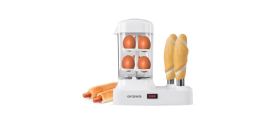 Orava HM-03 hotdogovač s nádstavcem na vaření vajec, 340 W, pro 6 párků, bílá