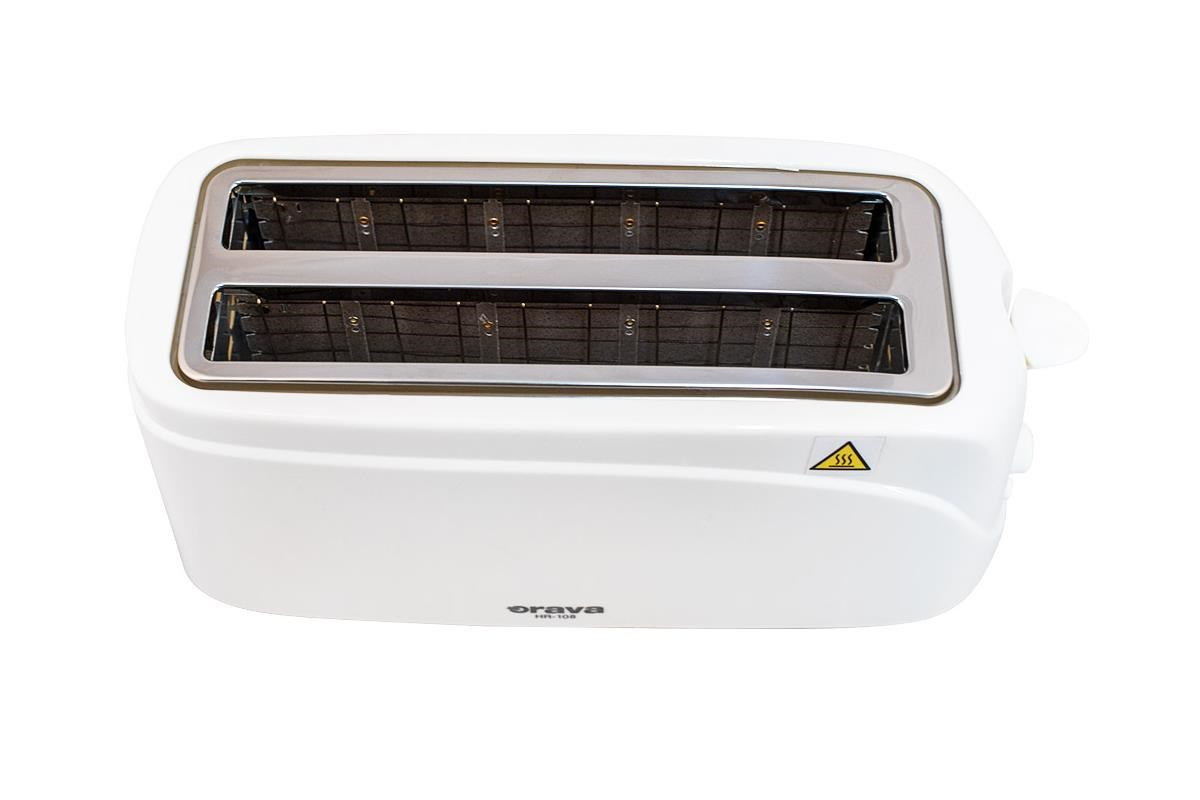 Orava HR-108 je topinkovač do každé rodiny. Má prostor pro opékání až 4 topinek najednou a poskytuje až 6 teplotních stupňů k výběru. Disponuje úctyhodným výkonem 1200 W a funkcí Stop, která je užitečná, pokud si myslíte, že jsou topinky už hotové - předčasně tak topinkovač můžete vypnout pouhým stisknutím tlačítka. Navíc má ve své výbavě šikovný zásobník na drobky, který lze v zájmu snadné údržby kdykoliv vyjmout a vyčistit.