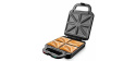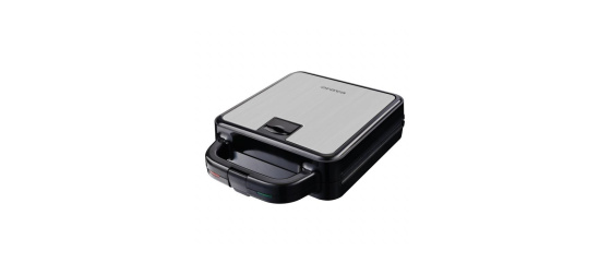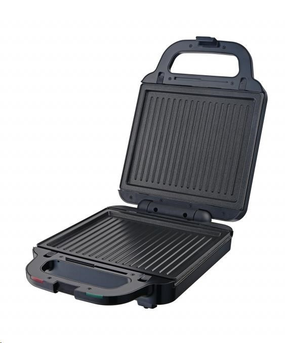 Multifunkční toustovač 3 v 1, 3 výměnné desky s kvalitním nepřilnavým povrchem, Sendvičovač pro 4 sendviče, vafle a grilování, Funkce otevřeného grilu, Tepelně izolované držadlo, Jednoduché čištění, plotny omyvatelné i v myčce nádobí, Světelná signalizace (napájení, ohřev) Tepelná pojistka, Napájení: 220 - 240V~ 50Hz, 1 400 W.